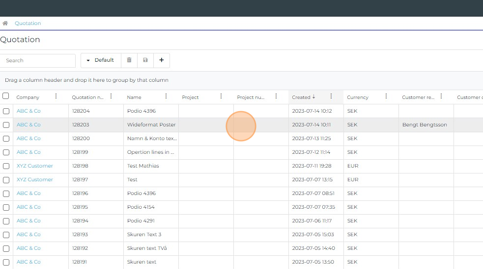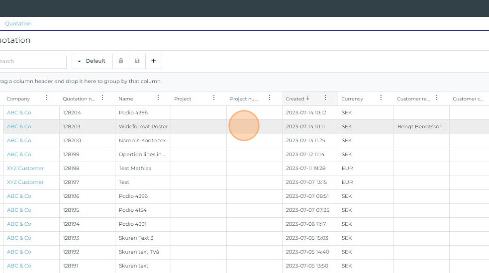 Goal This article shows how to update an existing quotation. You will learn how to change quantity, format, print material, and ink settings. At the end, you can also customize the product view to show only the columns you need. Procedure Step 1: ...
