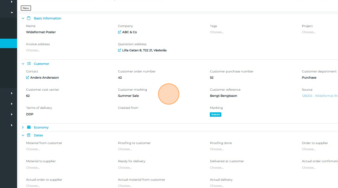 Goal This article shows how to create a new quotation (example: Poster). You can start from the quotations overview or from a specific company. The steps then continue the same way to complete the quotation. For details about each field on the form, ...