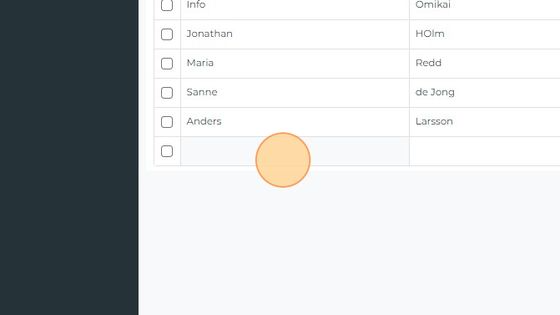 Click on a new row to create a contact. Type the contact information in the available fields. Press Enter or Tab to confirm your changes in each field.