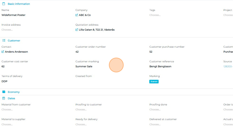 A new order is created. Add any missing information, make necessary changes, and set dates to make planning possible.