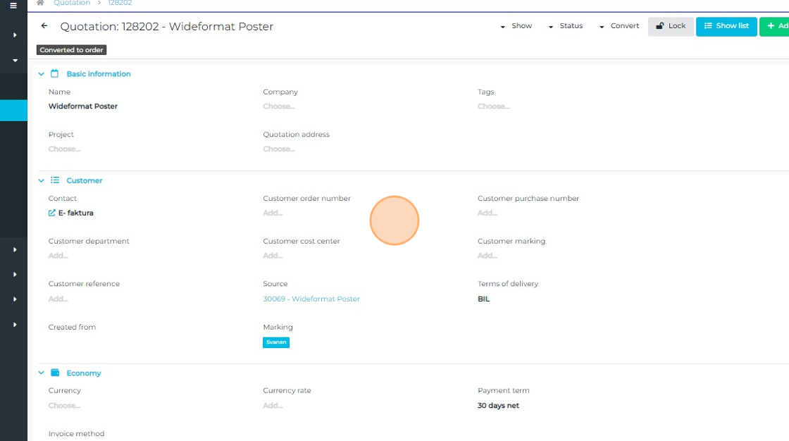 Step 2: Start the conversion to a quotation