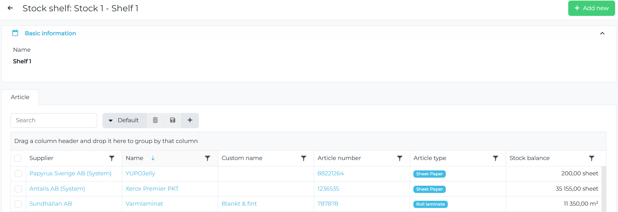 We have added the possibility to navigate to a stock shelf and see what articles exists on that place.