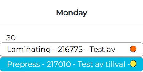 The order status is also displayed on the planning card as a small dot where the color indicates the status of the order.