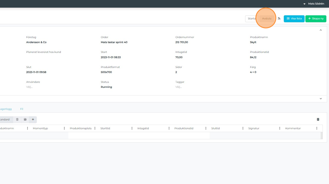 On the selected order, all operations are listed with their current status. The status shows if an operation is ready, can be started, production has started, production is in progress, or the operation is completed.