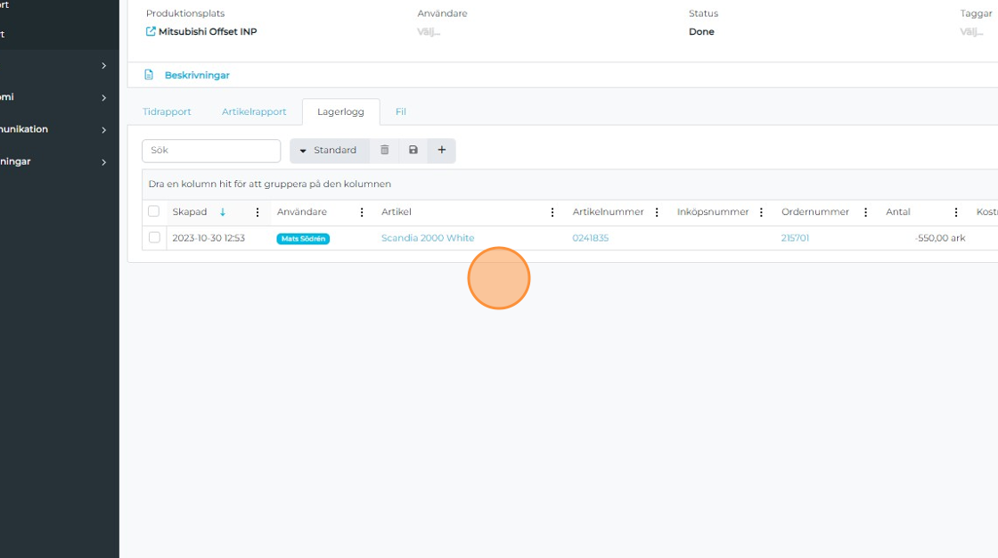 In the Article report section, you can overwrite the quantities for Setup (intake) and Production with the actual number of sheets used. This reduces stock by the consumed sheets and removes the reserved quantity for this job.