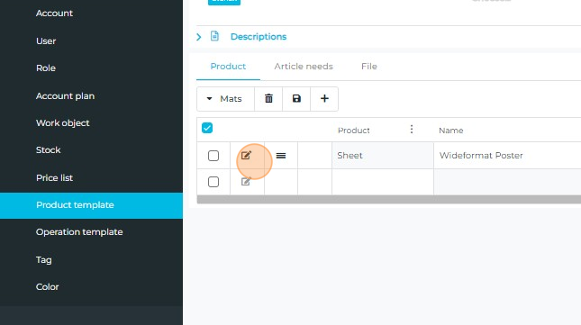 To edit operations linked to this template, click the pen-and-paper icon to open the operation list.