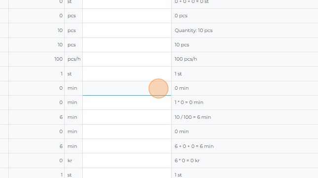 Click the field you want to change (for example, setup time for packing). Enter the new value, then press Tab to leave the field. The change saves automatically.